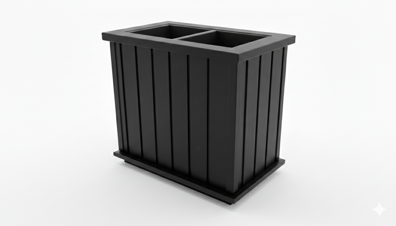 Chique bloembak, compleet van Douglas hout en inclusief 2 kunststof inzetbakken met handgrepen